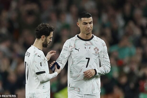 Cristiano Ronaldo sees RED: Portugal star is sent off for ELBOWING Ireland opponent before giving sarcastic response to decision – and he could miss country’s World Cup opener