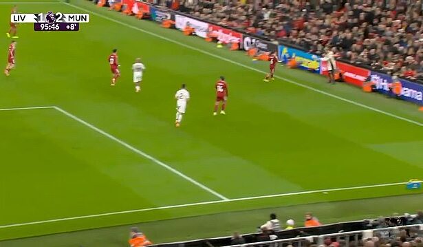 Los aficionados con vista de lince ven a Curtis Jones, del Liverpool, celebrando ANTES del terrible fallo de Mo Salah contra el Manchester United