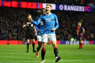 But Rangers didn’t power clear until after Bojan Miovski scored on the hour mark, securing a win that moves them three points behind league leaders Hearts.