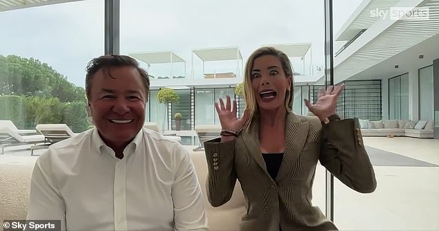 This prompted the husband-and-wife to look to their left before letting out a chuckle as Carolyn explained: ‘I think that was one of our boys because actually, they support Arsenal as well!’