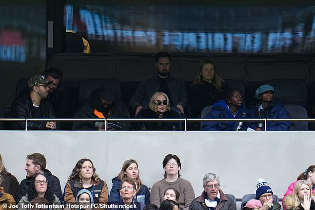 Madonna then travelled in her ‘second Uber ever’ to the Tottenham Hotspur Stadium on Sunday to soak in the afternoon’s Women’s Super League action between Spurs and Chelsea.