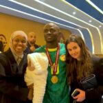 Diouf shared a social media post following the final, writing ‘She’s here (the medal and towel’, accompanied by a laughing face.