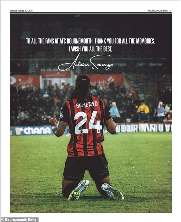 Antoine Semenyo took out a full-page advert in the Bournemouth Echo to thank the fans