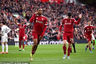 Earlier, Bukayo Saka nodded Arsenal into the lead after five minutes from Declan Rice’s cross
