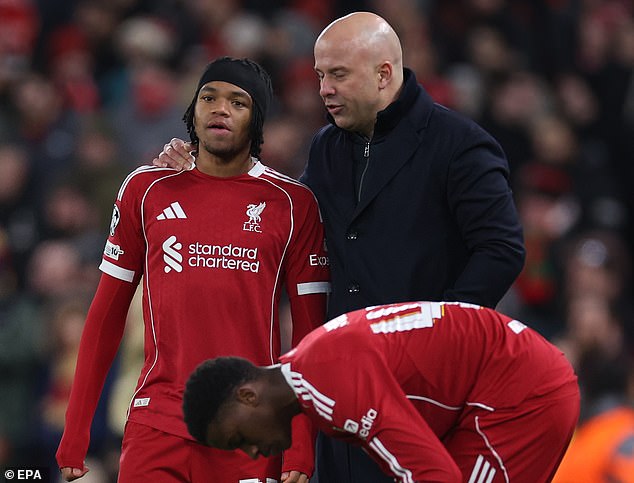 On Tuesday, Slot said: ‘Maybe the reason why we won the league last season is that we had to play Paris Saint-Germain in the last 16. As you know, they beat us, and we had every time a week to prepare for our next game. Maybe that has helped us.’