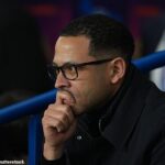 ‘Madueke dived. Blatant dive. Mr bias, Martin Keown, doing the game last night said it was a definite penalty. It’s getting a bit silly now his bias towards Arsenal,’ Agbonlahor said
