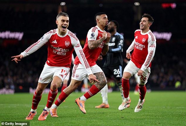 The Gunners scored the first four of five second-half goals in north London against Unai Emery’s side, with Gabriel Magalhaes, Martin Zubimendi, Leandro Trossard and Gabriel Jesus all finding the net before Ollie Watkins‘ consolation strike in stoppage time.
