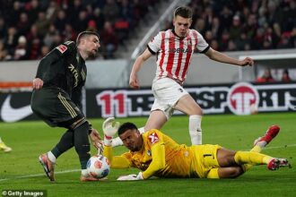 ‘He is a fighter,’ said Villa boss Emery. ‘Three years ago he was not involved in the national team and he deserves to be there. He is always doing his ask. When he is doing his task, his numbers come like today. He fought with the centre-backs, won duels, he was holding up the ball and playing passes. He was getting into the box, threatening and he scored. He did a fantastic job.’