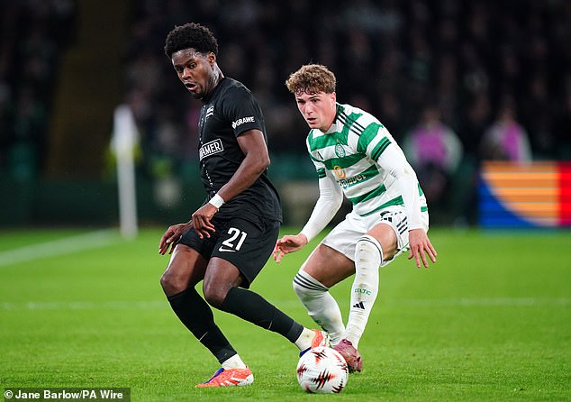 Tochi Chukwuani, shown in action for Sturm Graz against Celtic last October, is set to join Rangers in a £4m deal