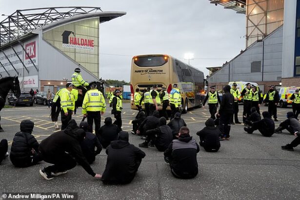 Furious Rangers fans barricade team bus as Russell Martin is given a police escort after draw at Falkirk