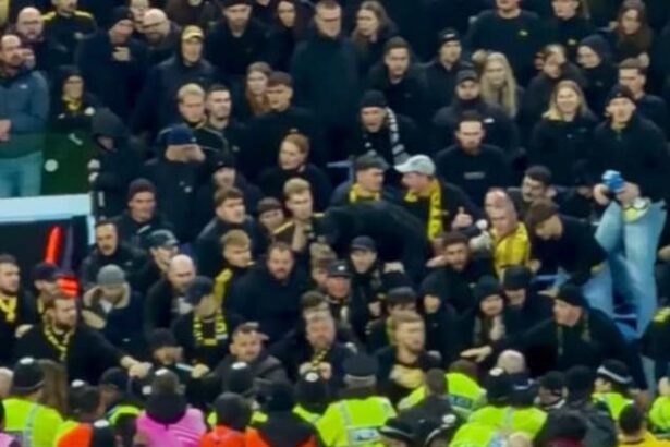 Police officers are punched in the face as Swiss hooligans bring violence back to English football: New footage shows shocking scene at Villa Park
