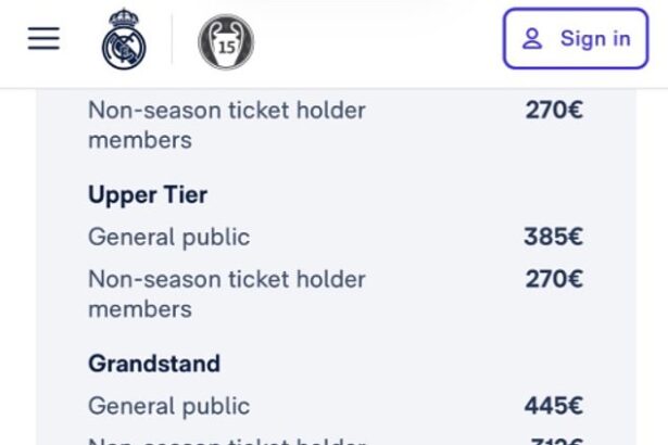 Hundreds of tickets still available for Real Madrid’s blockbuster Champions League clash with Man City – with prices rising to more than £380 per ticket!