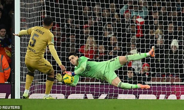 Arsenal 1-1 (8-7 pens) Crystal Palace: Gunners sneak into Carabao Cup semi-finals after Kepa Arrizabalaga makes only save in epic shootout
