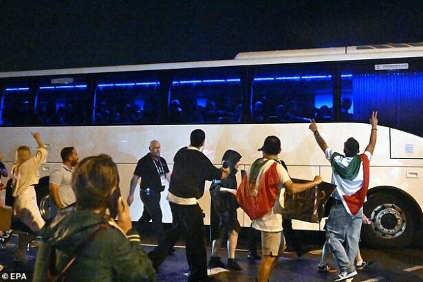 Iranian soccer stars beg for help while protesters surround their bus as team face possible death sentence for brave anthem boycott in Australia