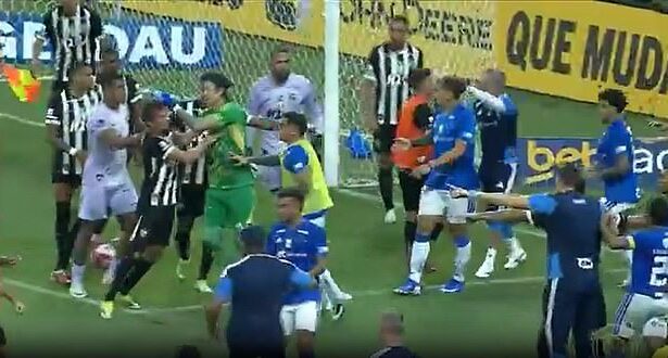 Shameful football brawl sees TWENTY-THREE players sent off – including former Champions League hero for THIS punch