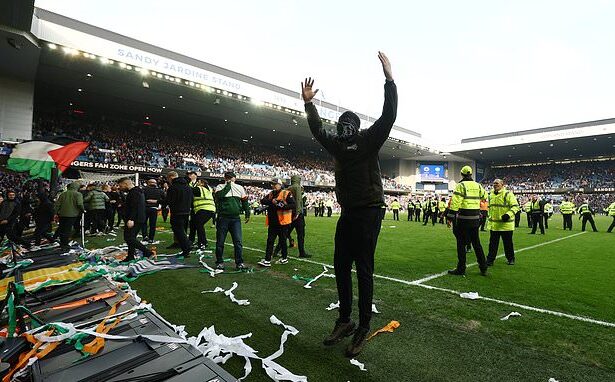 Chaos unfolds in the Old Firm derby as police are forced to separate Celtic and Rangers supporters following pitch invasion at the end of dramatic Scottish Cup tie