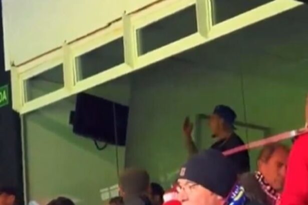 Man United’s £86m flop Antony taunts rival fans while watching from the stands as Seville derby is suspended amid crowd unrest