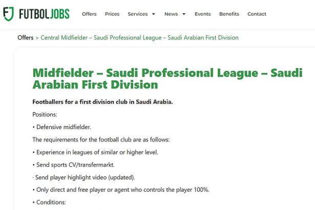 Fancy playing Cristiano Ronaldo? Saudi Pro League bizarrely advertise for a new defensive midfielder on jobs website – offering salary of up to £875,000