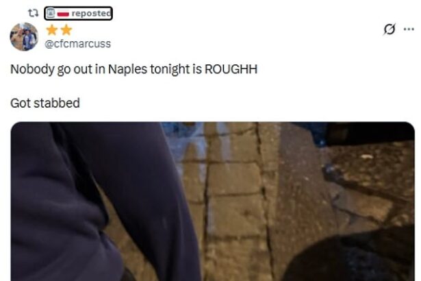 Two Chelsea fans ‘stabbed’ in Naples after being ‘chased by 25 ultras’, with one victim sharing picture of his blood-soaked hand as club warn supporters to take extreme caution