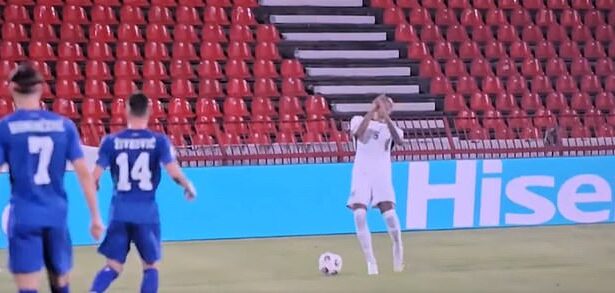 England’s clash with Serbia is temporarily paused as angry home fans point LASERS at Three Lions stars