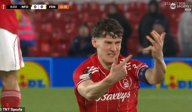 Ouch! Ryan Yates suffers horror finger injury during Nottingham Forest’s Europa League clash with Fenerbahce – and plays on anyway!
