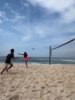 Real Madrid WAG stuns fans with her incredible football skills as she plays footvolley on the beach