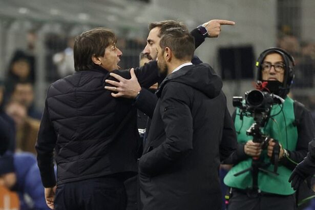 Raging Antonio Conte yells in fourth official’s face after seeing red as Scott McTominay scores twice in top-of-the-table thriller in Italy