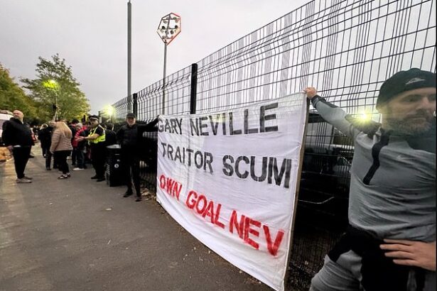 Fans turn on ‘traitor’ Gary Neville: £1.1m-a-year pundit is targeted by protest outside his flagship hotel and at football club he owns after his ‘racist’ Union Jack rant