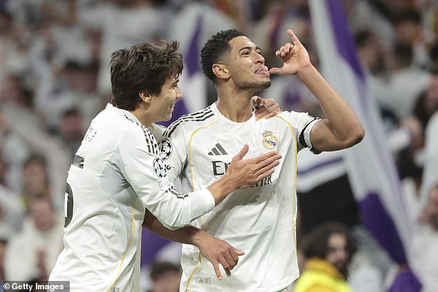 ‘My celebration? A lot of people say a lot of things,’ Bellingham explained after the final whistle. ‘Anyone can stand in front of a camera and say whatever they want, and people believe it.