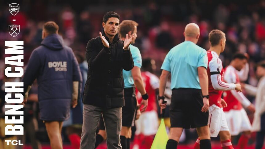 BENCH CAM | Arteta celebrates 300 games in charge with win! | Arsenal vs West Ham United (2-0) | EPL