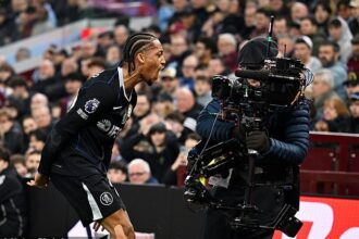 The club even shared a post of the Hollywood trio with the caption, ‘Welcome to Alvalade Sydney Sweeney, Leo Woodall and Matthew Goode’.