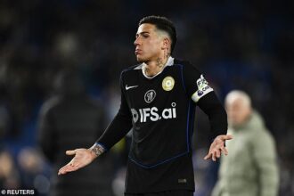 ‘I suppose three-nil is better than four-nil,’ he said. ‘It’s a bad result. We cannot deny it. It was difficult to control transition. The first goal was not well defended. So yes, it is a difficult result. Now we go to London to play West Ham and then next week, with our people, we will try.’