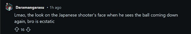 ‘The look on the Japanese shooter’s face when he sees the ball coming down again, bro is ecstatic,’ another quipped.