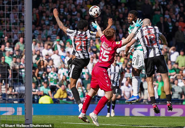 Notwithstanding those two scares, Celtic were on top. Yang Hyun-jun struck the bar with a floated header after meeting Kieran Tierney’s deep cross.