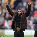 He reappeared to the fading final notes of Charlton’s ‘Red Red Robin’ walk-on music and made his way along the touchline, zipping up his black-and-grey winter coat with hair wafting in the breeze.