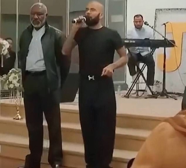 With a microphone in-hand, he was filmed passionately telling crowds gathered in the church: ‘You must have faith, my brothers. I am proof of that. What God promises, God fulfills.