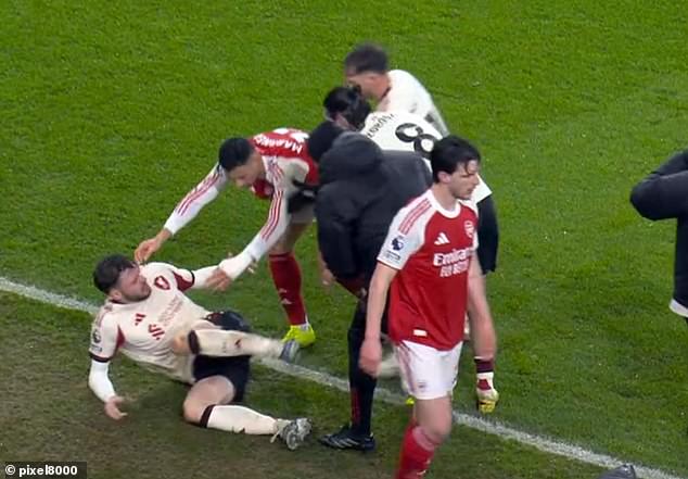 Gabriel Martinelli attempted to push the injured Conor Bradley off the pitch on Thursday night, but will avoid any retrospective action given the referee showed the Brazilian a yellow card