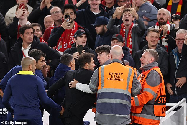 Diego Simeone clashed with Liverpool fans after Virgil van Dijk’s late winner against Atletico Madrid