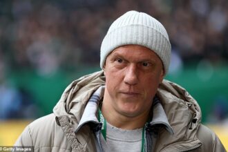 ‘I think there will be twists and turns, to be honest,’ he added. ‘I think you only look at how it played out at Rugby Park today. A team fighting to stay in the league can make it still go to the 97th, 98th, whatever minute it was.
