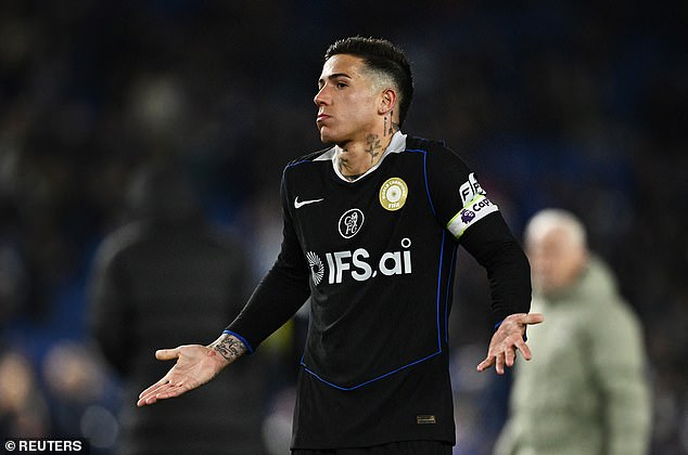Enzo Fernandez was seen reacting to the Chelsea fans after their 3-0 loss to Brighton