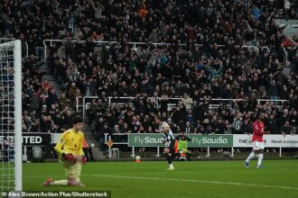 Providing an update on Ekitike’s absence ahead of the delayed kick-off, Slot said: ‘Hugo picked up a slight hamstring injury because we had to play him more and more minutes.