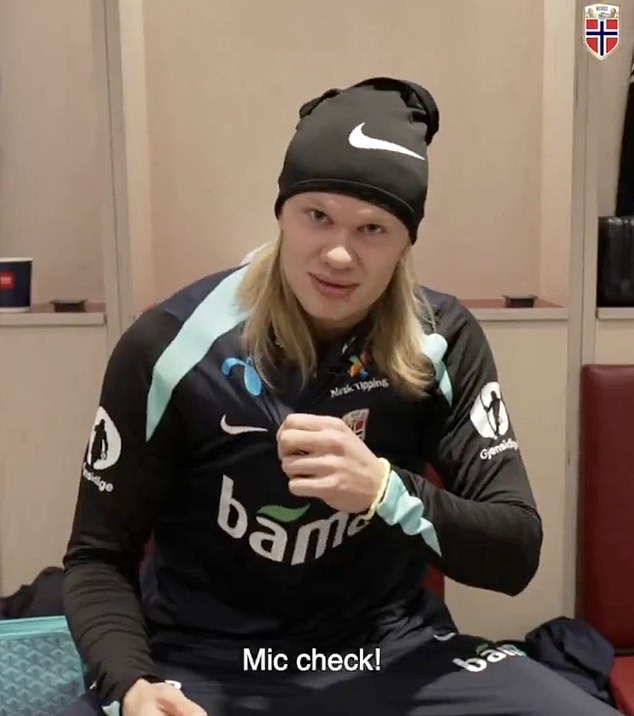 With a meeting against Israel to come, Haaland was therefore in a buoyant mood and happy to show off during the training session, letting fans into his high jinks after agreeing to wear a microphone.