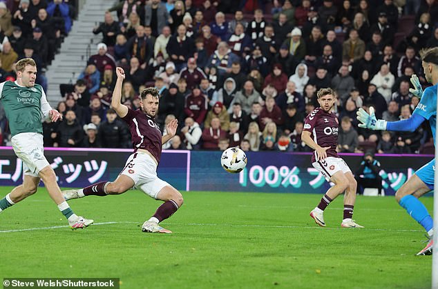 Two minutes into time added on in a game short on quality, low on chances and lacking the fireworks promised pre-match, the Hearts centre-back showed the control and composure that had been so hard to come by for both sets of players all evening.
