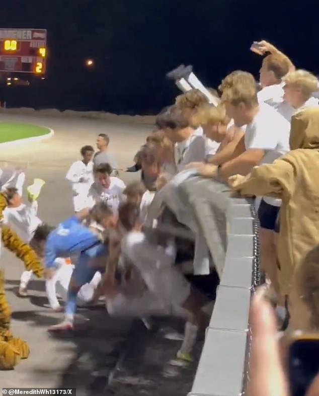 The scary scene was captured in clips that spread across social media in the aftermath of the game. One witness described it as ‘truly terrifying.’