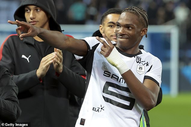 Matt Spiro, the French commentator, says: ‘He looks like a man among boys, I felt similarly in the past watching teenage William Saliba and Raphael Varane. Jacquet stood firm and Rennes nicked a 91st-minute winner.’