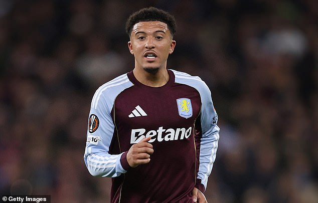 Jadon Sancho has started just one game since joining Villa, the League Cup clash at Brentford