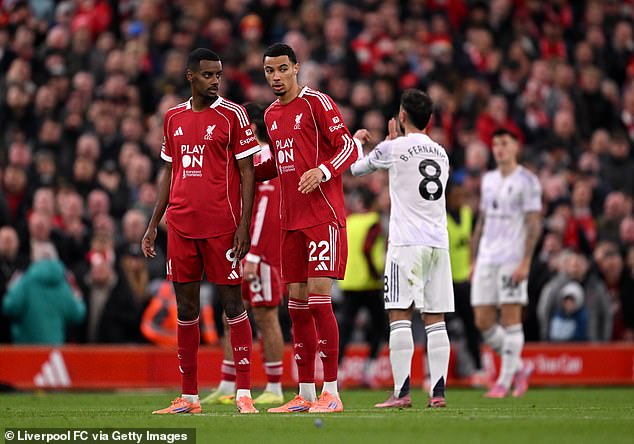 ‘I think Slot has to find a way of getting both of them on the pitch,’ he continued of Isak and Ekitike. ‘I am trying to wrack my brain.