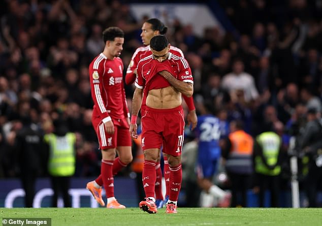 Salah, 33, failed to get on the scoresheet for the fifth time in seven Premier League games as the Premier League champions slumped to their third defeat in a week, in what many fans have called the ‘week from hell’.