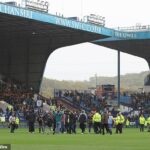 By far the biggest show of support came for Lammens who had little to do until late in the second half when he made a flying save to palm away Granit Xhaka’s shot and then plucked Noah Sadiki’s cross out of the air, both to a huge cheer.