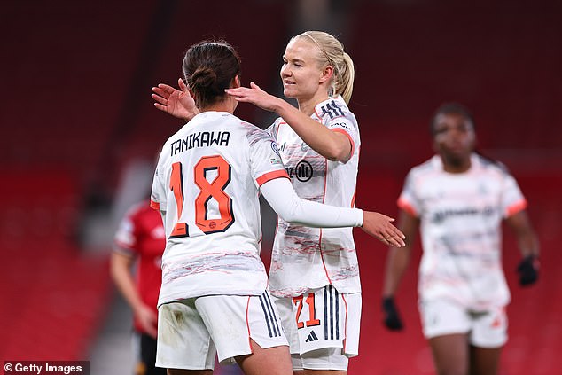 Pernille Harder’s brace – and a third from Momoko Tanikawa in the 84th minute – has given United an almighty task to carry with them to the Allianz Arena next week